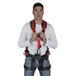 El arnés Dermacare PA-33 es un equipo de protección anticaídas de cuerpo completo, diseñado en color naranja y gris con tres aro…