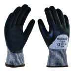 El guante de corte color gris con polietileno AD y látex en la palma, modelo 51-965 de la marca Dermacare, es un guante fabricad…