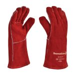 El guante de carnaza de res color azul de la marca DermaCare, modelo 99-818, cuenta con costuras de hilo kevlar, un material resistente al calor que evita que las costuras se quemen al manejar altas temperaturas. Tiene un diseño con forro de hule espuma y algodón en todo el guante, lo que prolonga su vida útil. El puño es recto y mide 14 pulgadas. Este guante está especialmente diseñado para soldadores, ya que está hecho de carnaza de res curtida al cromo y tiene un doble engrase con tratamiento a base de aceites. Además, cuenta con un refuerzo de carnaza doble en la palma y el pulgar. Es ideal para la industria de soldadura, metalmecánica e inyección de plásticos. Tiene una garantía de 1 año por defecto de fabricación y cumple con la certificación europea EN 388 4243. Se vende en pares y la caja máster contiene 72 pares.