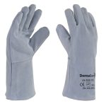 El guante de carnaza de res color azul de la marca DermaCare, modelo 99-818, cuenta con costuras de hilo kevlar, un material res…